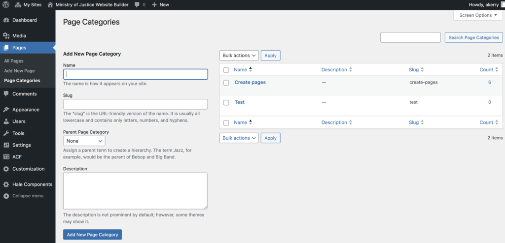 You’ll see a list of categories already created and the number of pages assigned to each category.