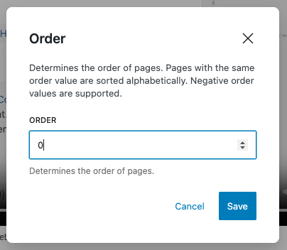 You can also assign categories and set the order from the list of pages in your dashboard by clicking ‘Quick Edit’.