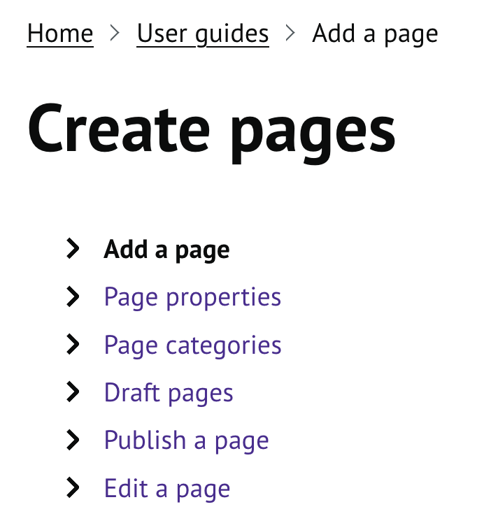 The page titles in that category will be visible at the top so a user can go to pages quickly and see what’s in a section.