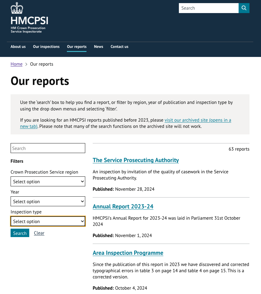 Reports on the HM Crown Prosecution Service Inspectorate site: