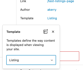 A listings page is one of the page templates available on Website Builder, along with ‘default’ and ‘full-width’