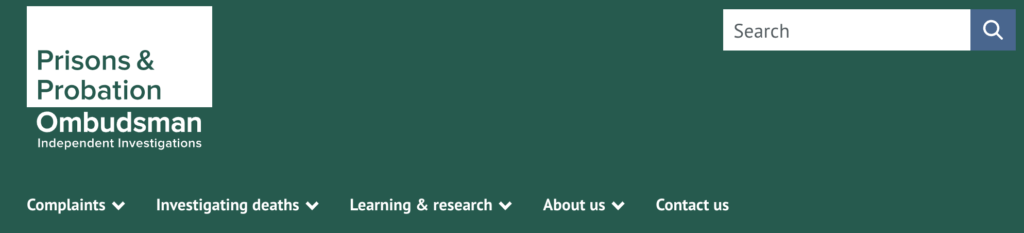 Another example of main site navigation from the Prisons & Probation Ombudsman site: