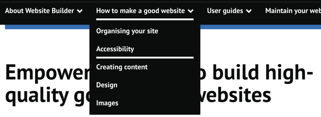 When users hover over the main headings across the top of the page, it reveals a second level of headings.