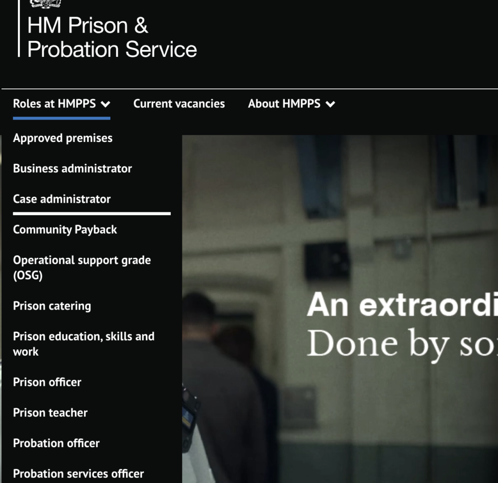 Another example of second-level navigation from the Prison and Probation jobs website:
