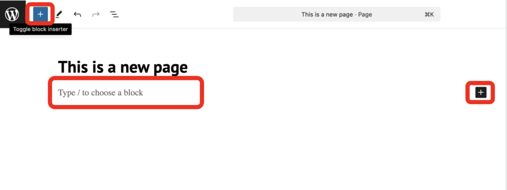 Create a page and start building. There are different ways to choose and insert a block: